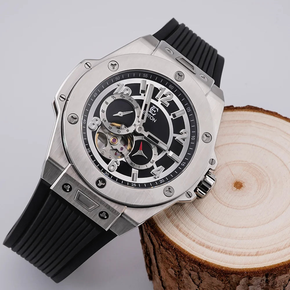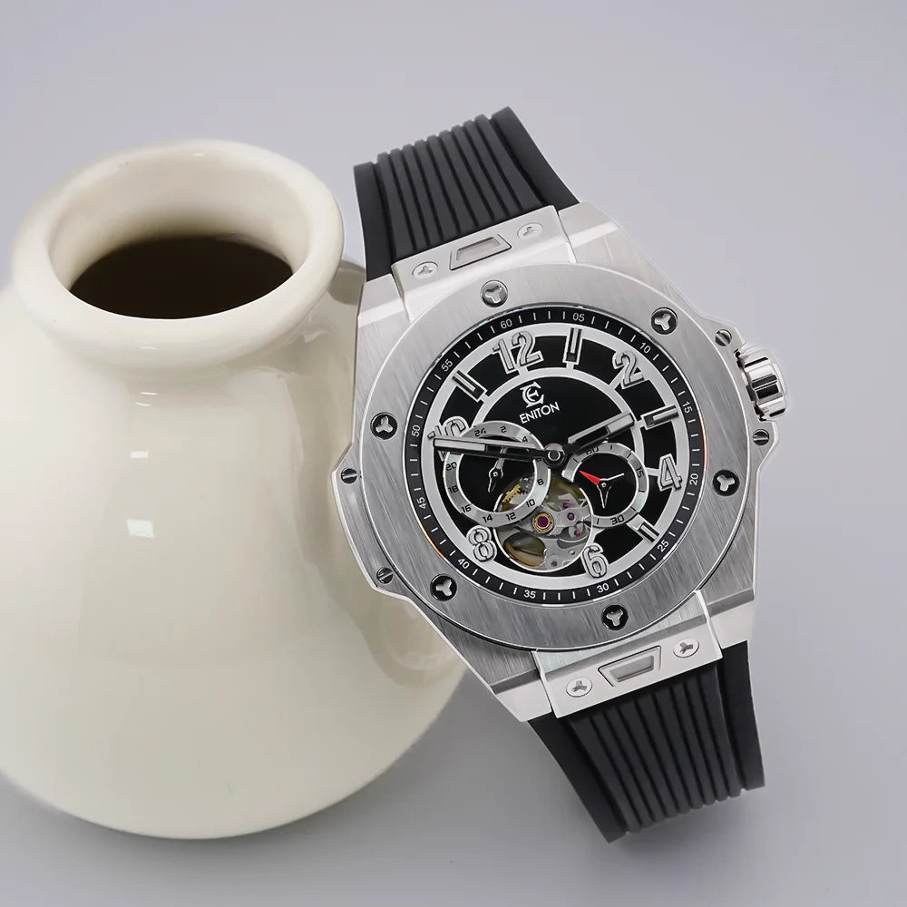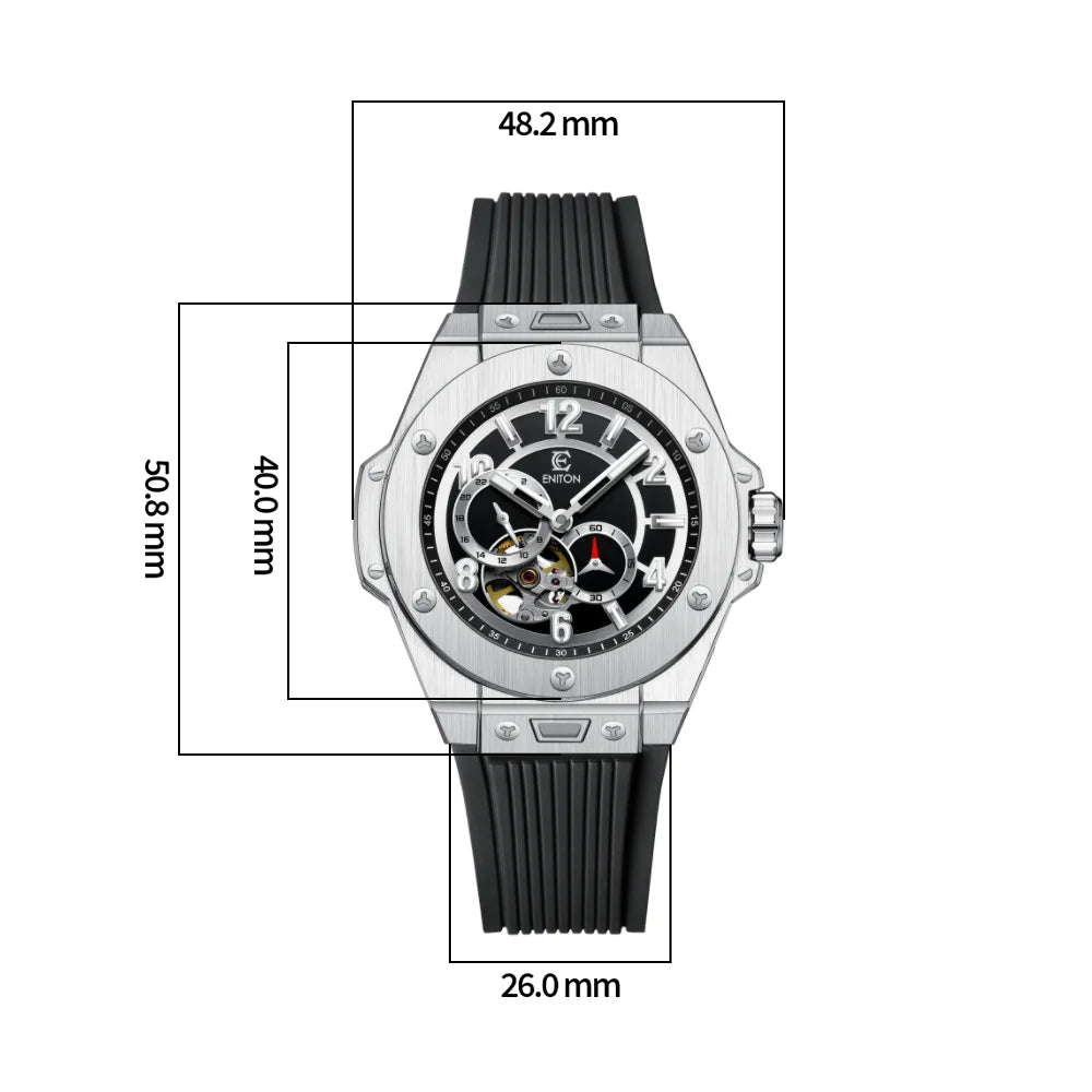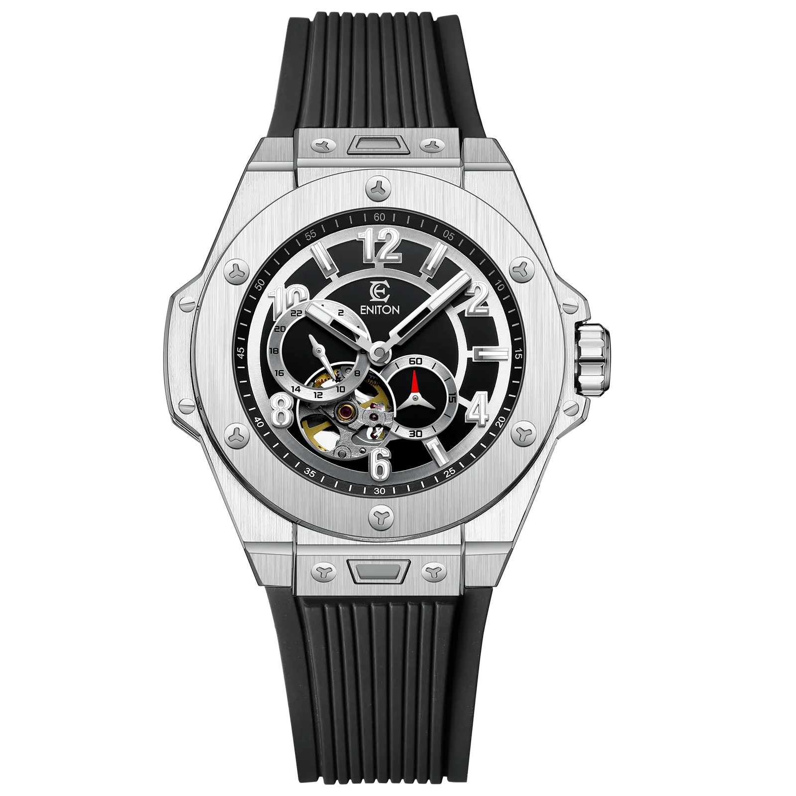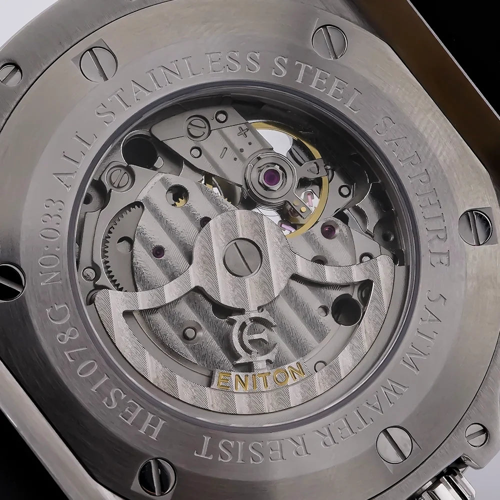 The Okto Genève by Eniton is a true statement of modern horology, blending Swiss craftsmanship with contemporary aesthetics. Its brushed stainless steel case and signature octagonal-inspired bezel embody strength and sophistication, while the open-heart dial reveals the beating soul of its automatic self-winding movement.